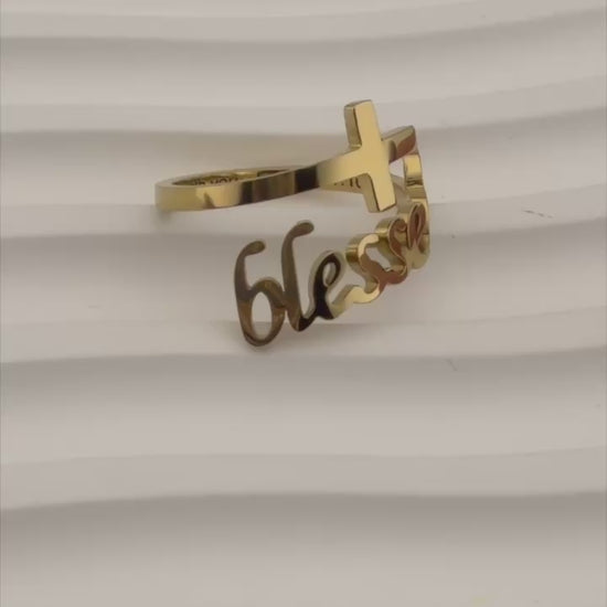 Anillo Blessed con Grabado | Acero Inoxidable Chapado en oro 18K | Ajustable