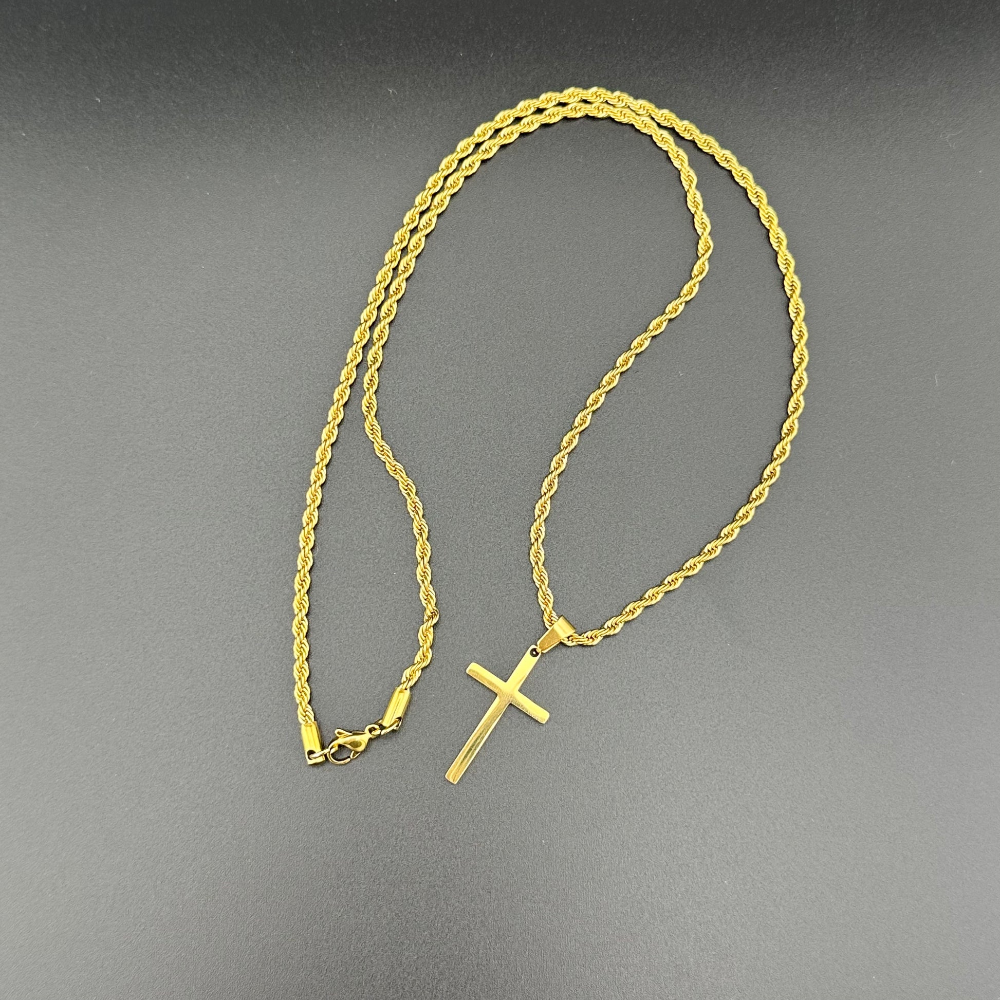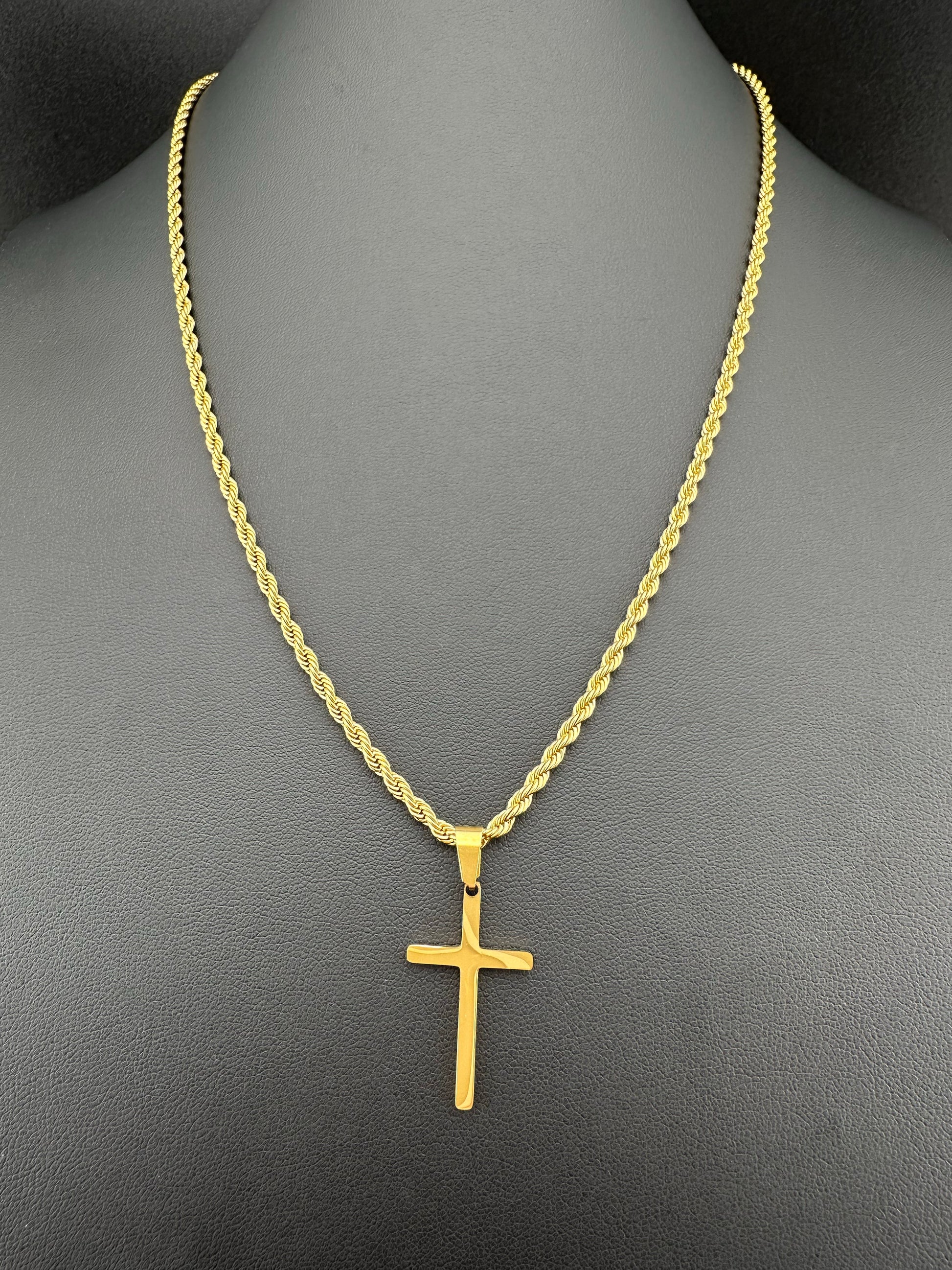 Collar Clásico con Dije de Cruz Unisex | Acero Inoxidable | Chapado Oro 18K