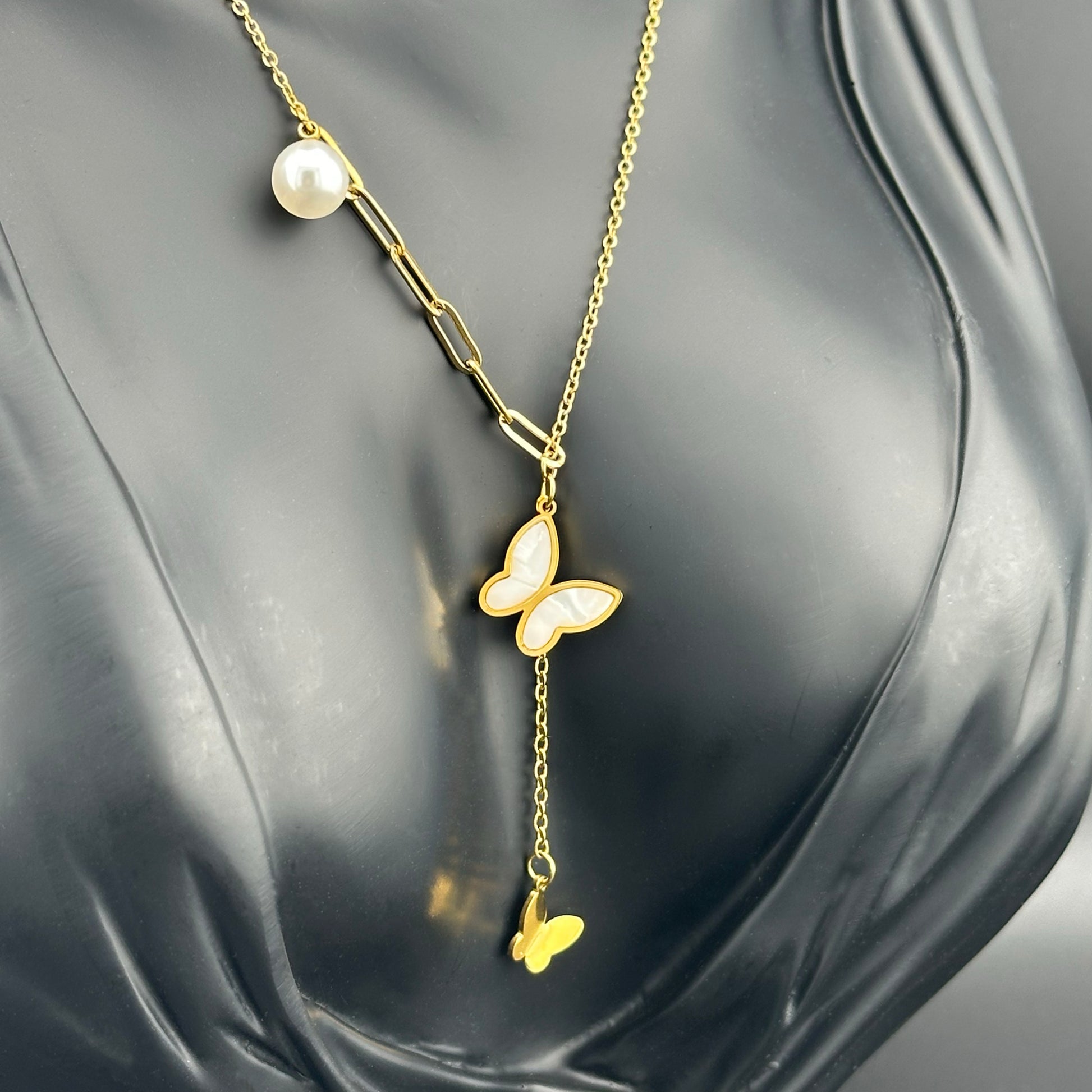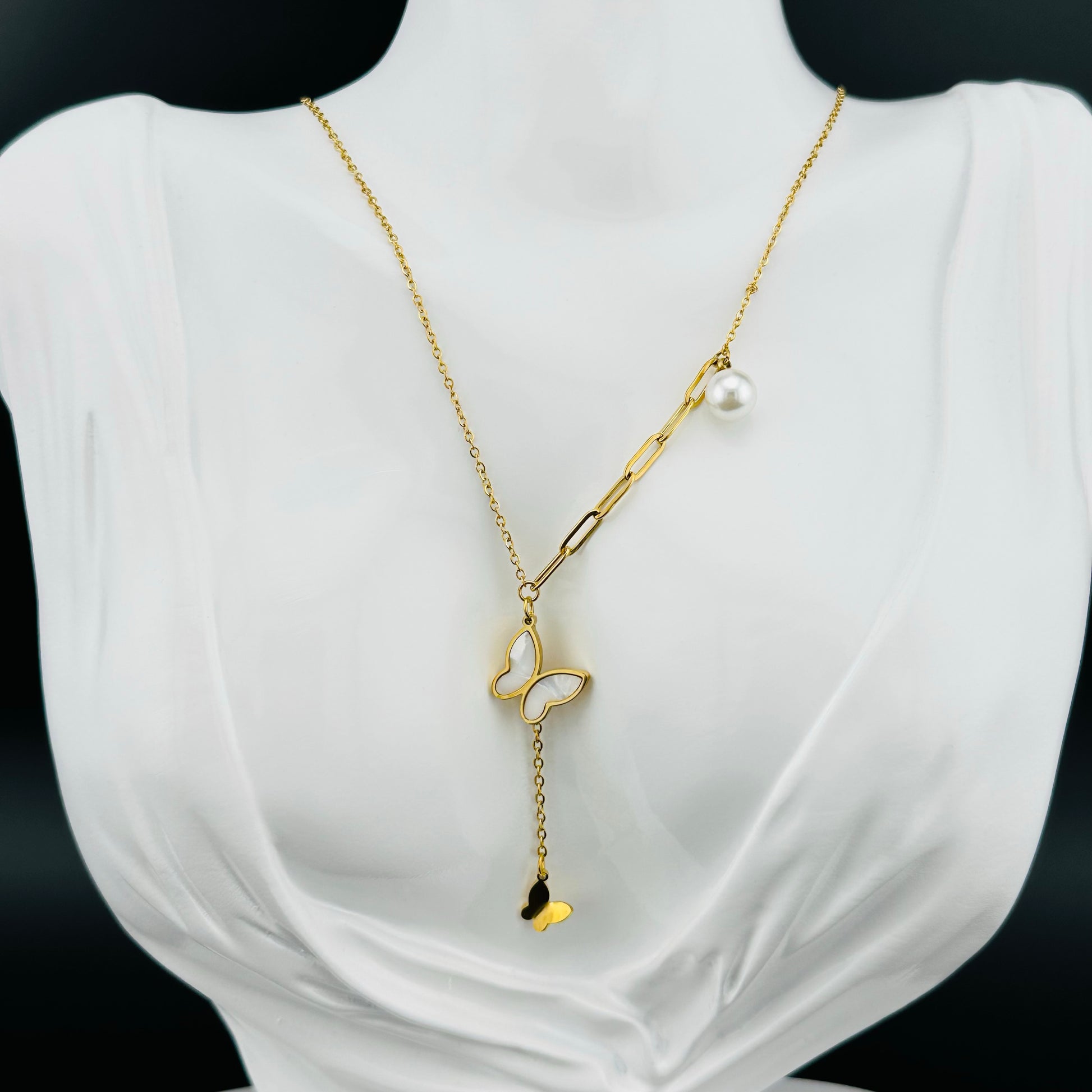 Collar de Mariposas con Perla – Mujer | Acero Inoxidable | Chapado Oro 18K | Ajustable