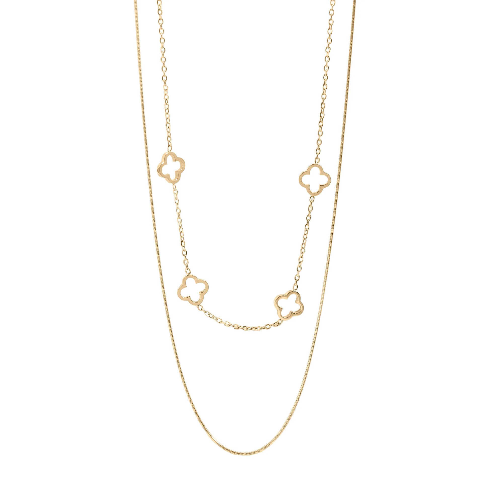 Collar Doble con Trébol Dorado – Mujer | Acero Inoxidable | Chapado Oro 18K | Ajustable