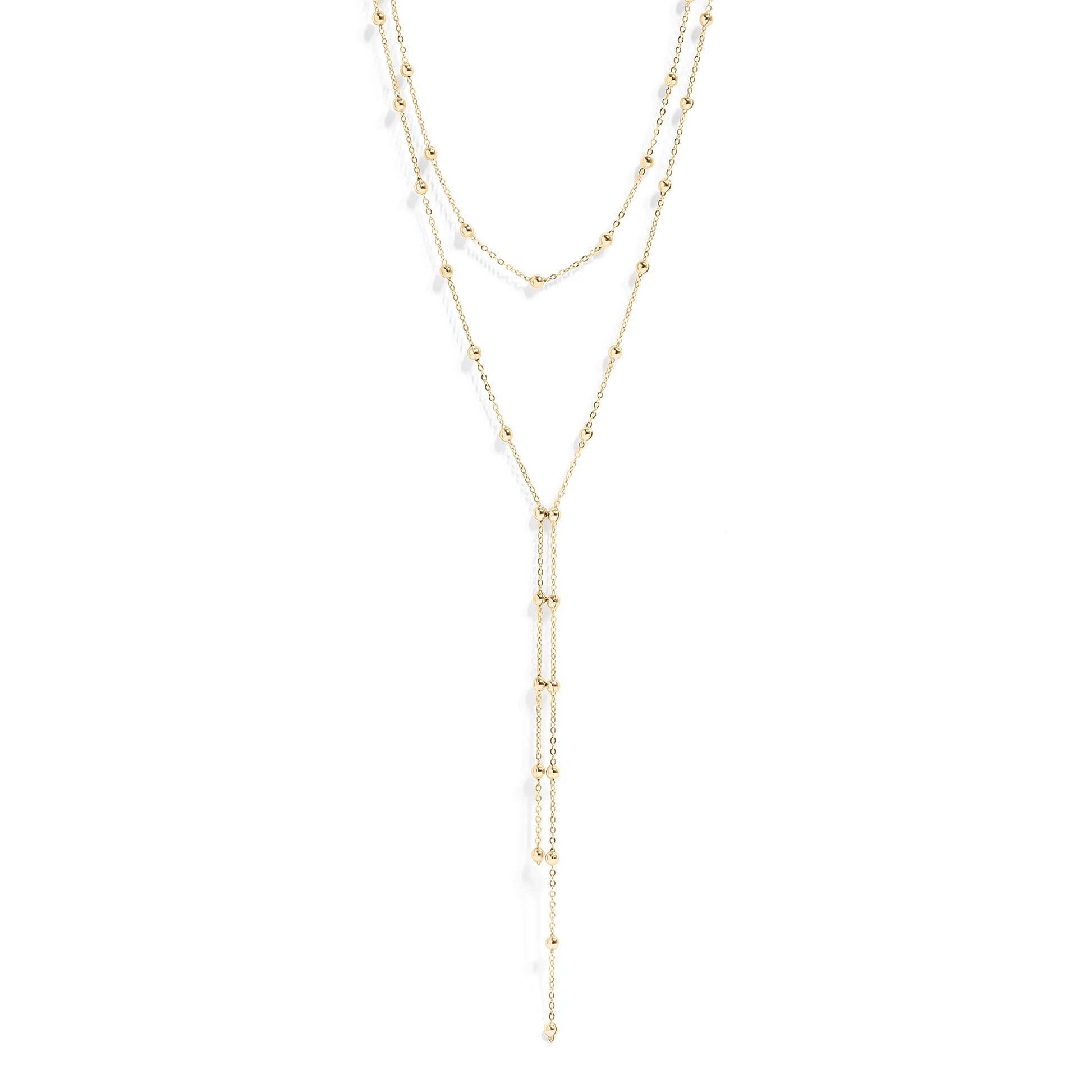 Collar Lariat en Capas – Mujer | Acero Inoxidable | Chapado Oro 18K | Ajustable | Con Caída