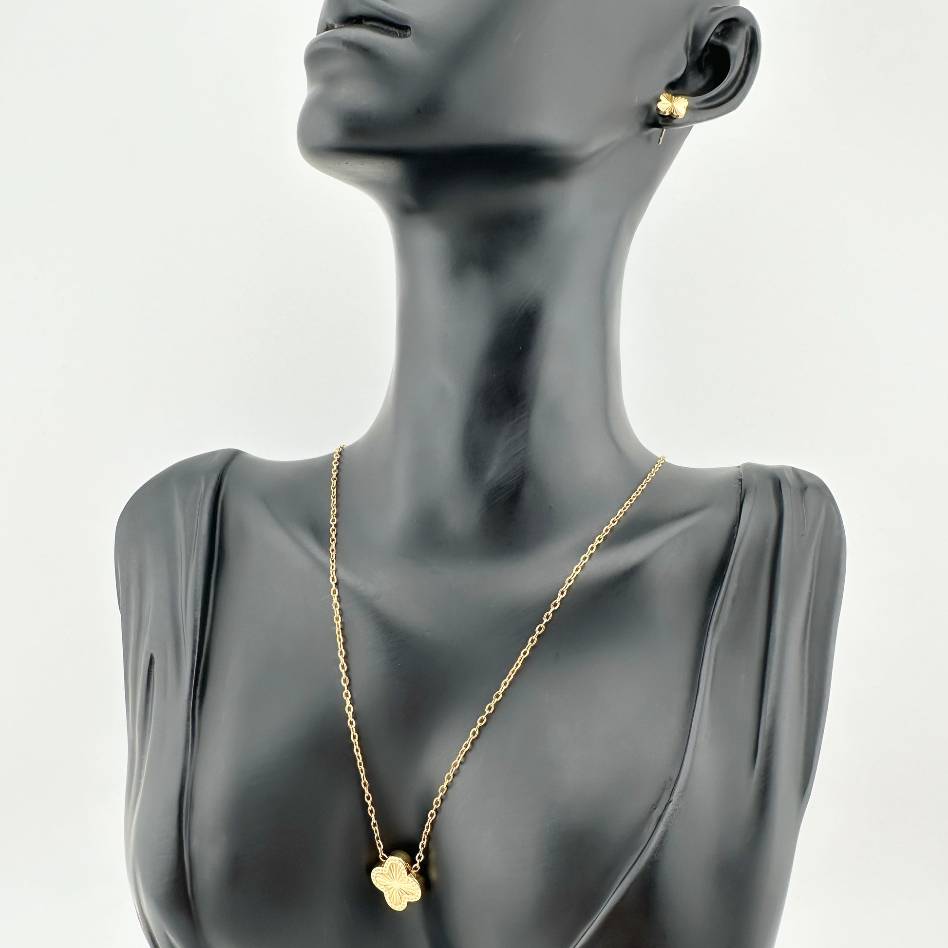 Este collar con dije de trébol dorado es una pieza delicada y sofisticada, perfecta para acompañarte todos los días o elevar cualquier look con un toque de brillo y significado especial.