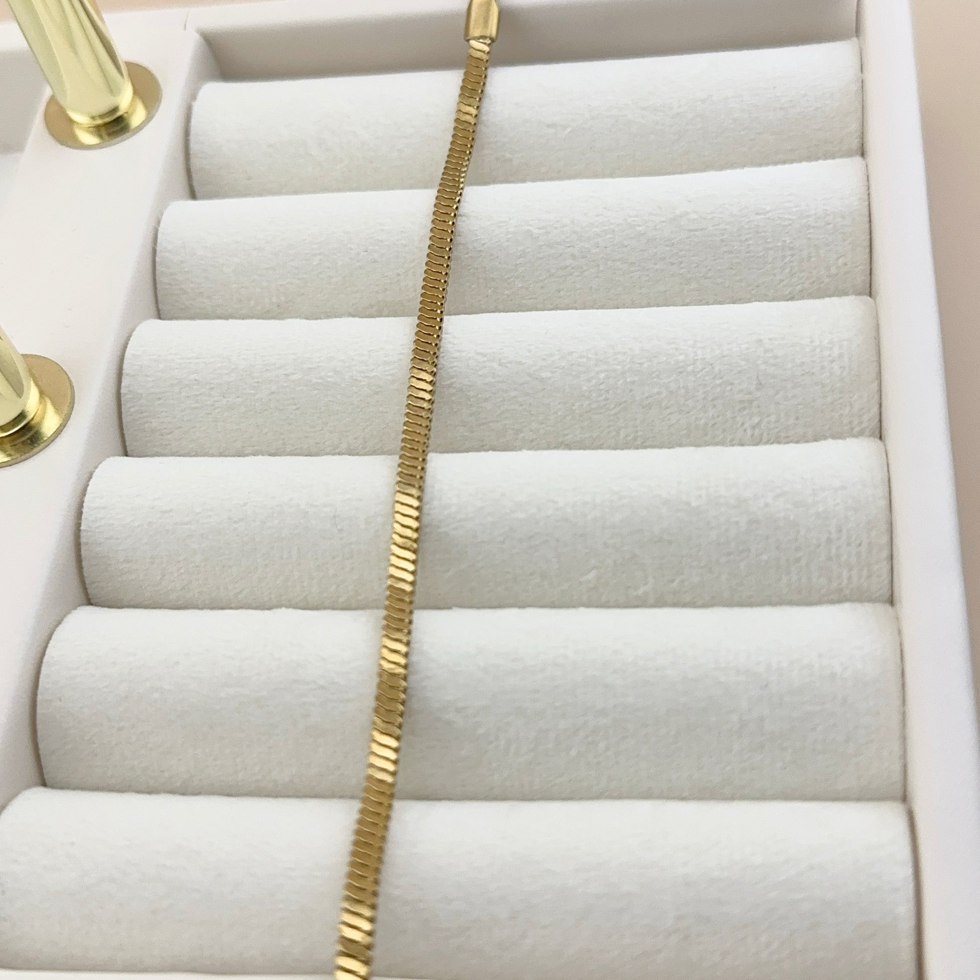 Esta pulsera dorada estilo serpiente es una pieza unisex ideal para quienes buscan accesorios con personalidad. Su acabado y textura la convierten en un complemento llamativo y elegante para cualquier look.