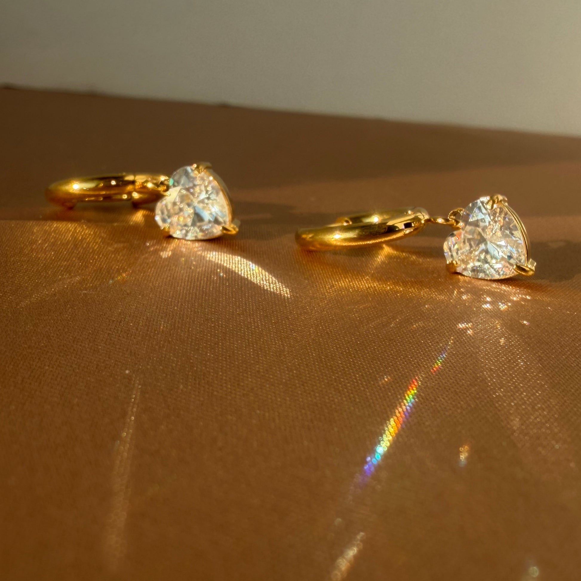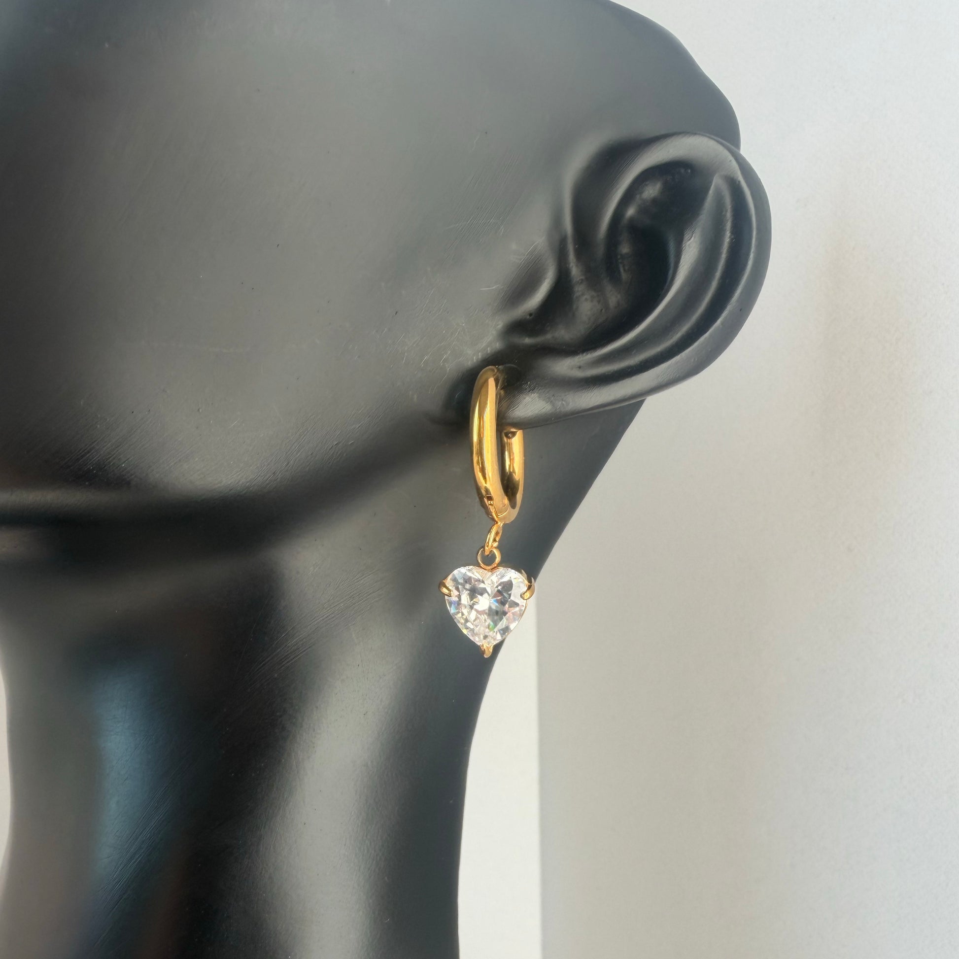 Sus zirconias brillantes en forma de corazón reflejan la luz con suavidad, aportando un toque romántico y sofisticado. Perfectos para el día a día o para ocasiones especiales, estos pendientes están pensados para acompañarte con comodidad y estilo.