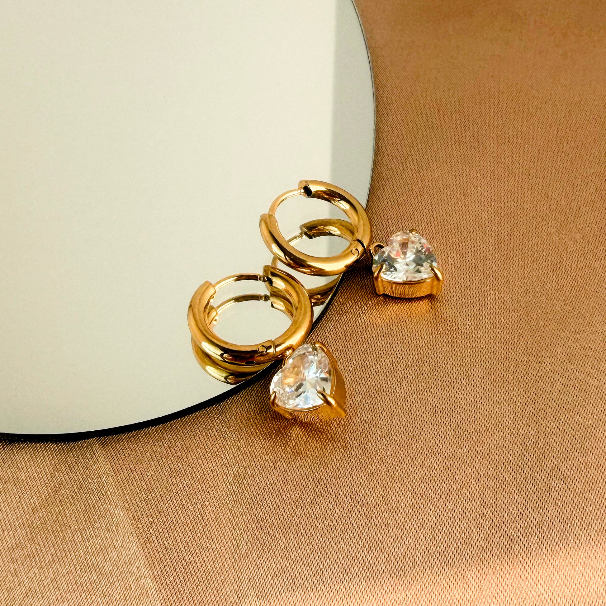Pendientes Aura Corazón con Zirconias | Acero Inoxidable Chapado PVD Oro 18K | Colgantes