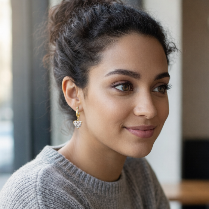 Los Pendientes Aura Corazón destacan por su brillo sutil y su movimiento elegante, convirtiéndose en una pieza atemporal que realza cualquier look.