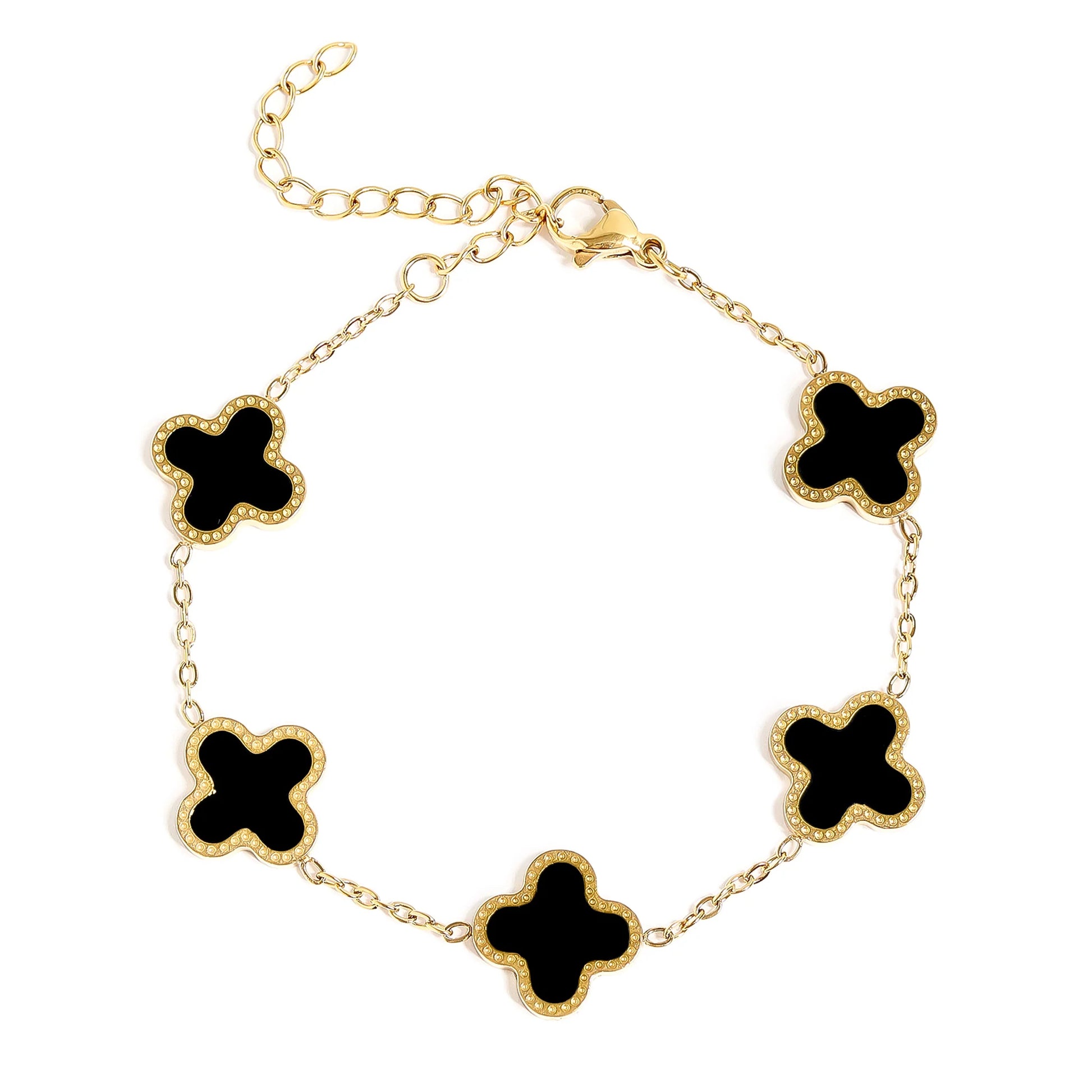 • Pulsera con 5 dijes de trébol de la suerte color negro